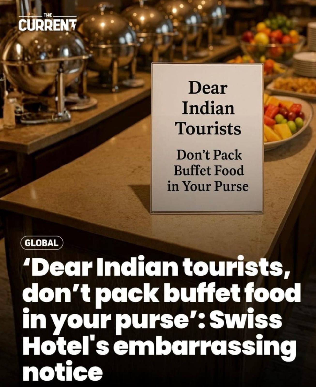“أيها السائحون الهنود الأعزاء، لا تضعوا طعام البوفيه في حقيبتكم: إشعار محرج من فندق سويسري”